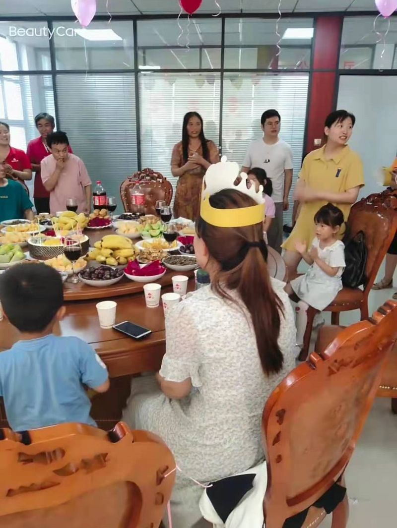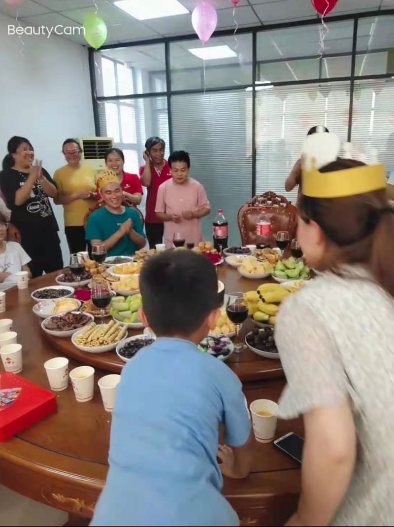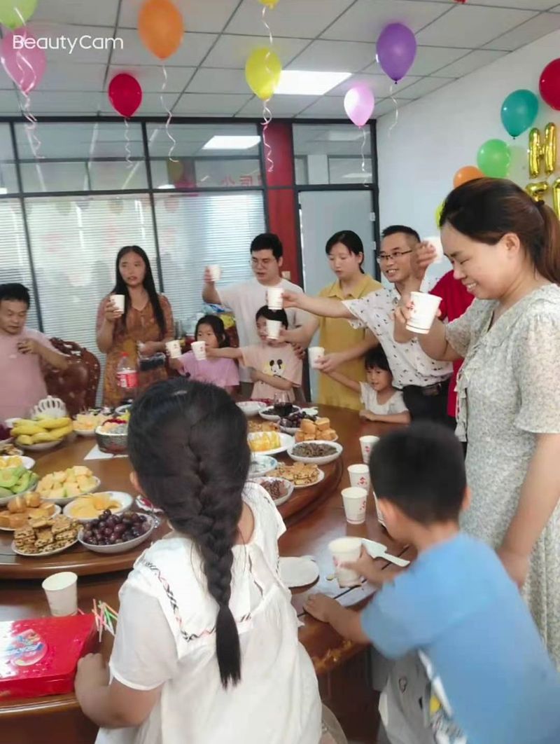 我們公司**為七月份過生日的員工集體舉行一個既儉樸而隆重的生日聚會!說她簡樸,是桌上沒有大魚大肉,說她隆重,是有那么多兄弟姐妹同時為你唱起:生日快樂歌”祝你生日快樂”!同時為你送去了祝福!那是難能可貴的,我相信每一位過生日的家人都有一種說不出來的幸福感!這就是家的溫暖!這就是集體的力量!公司就是我們的家!是我們的靠山!是我們避風港灣!我們要愛她!守護她!建設好她!讓我們這座更高更大!我們靠的才更穩!